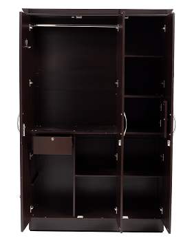 Armadio 3 Door Wardrobe with MDF & PU in Dark Chocolate Color