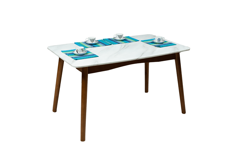 Atlanta Dining Table with Composite Marble and Wooden Leg in Carrara Marble Finish