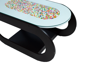 Beetle Tea Table/Centre Table with MDF & PU in Walnut & White Color with Glass Top