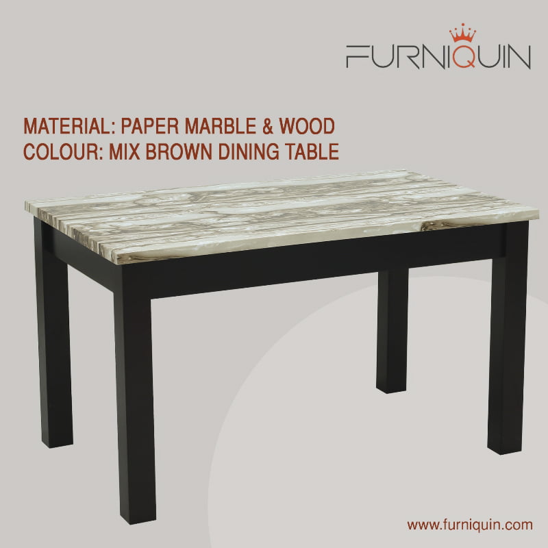 Size: 1300 X 80 X 75_x000D_\nMaterial: Paper Marble & Wood_x000D_\nColour: Mix Brown Dining Table