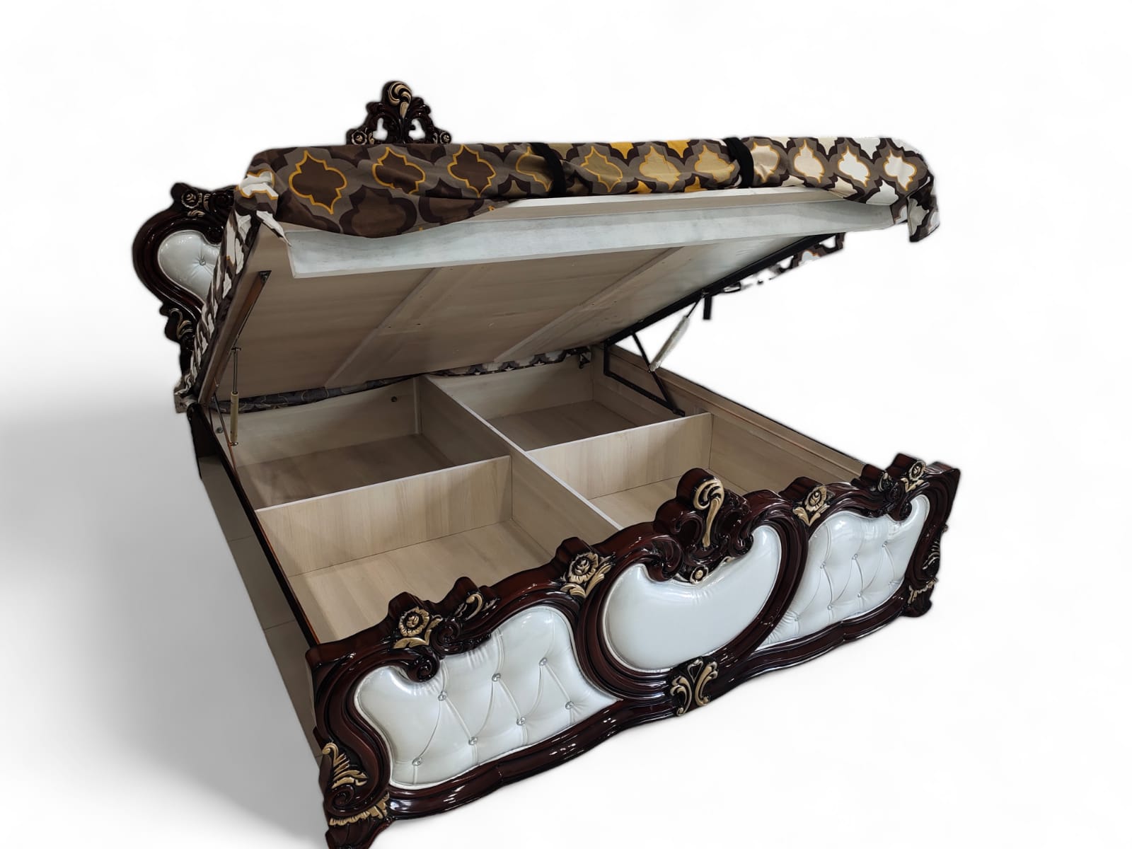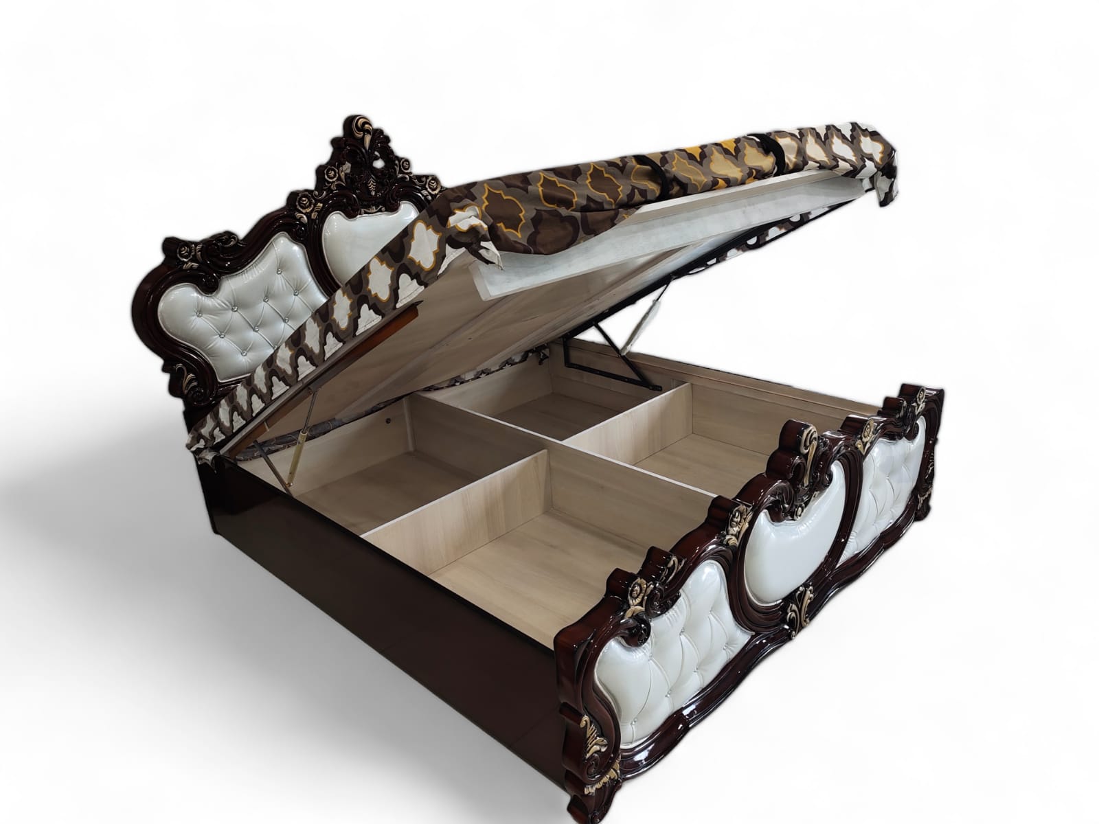 Half Moon King Bed Full Hydrolic Bed Natural Wood White PU