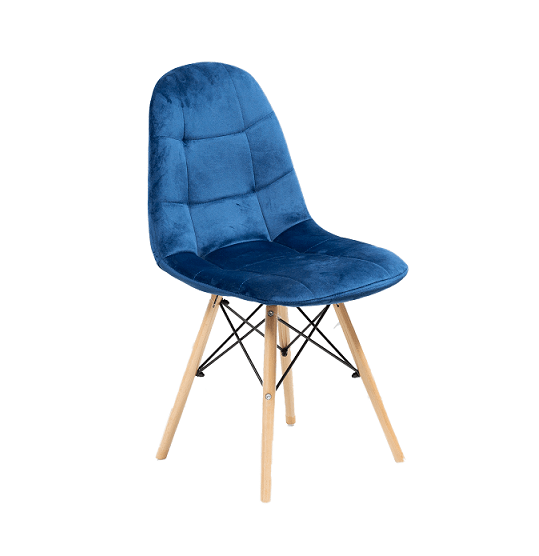 Indiglo Dining Chair with Blue Velvet and Wooden Leg