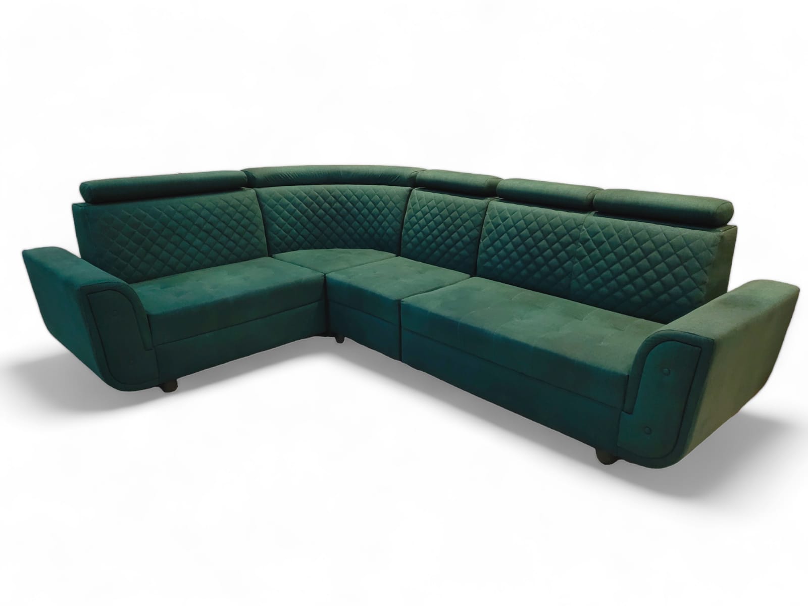 Raveena L-Sofa with Side Adjustable Head Rest Adjustable Greean Fabric