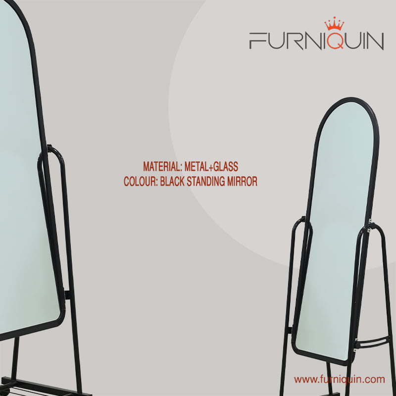 Material: Metal+Glass_x000D_\nColour: Black Standing Mirror