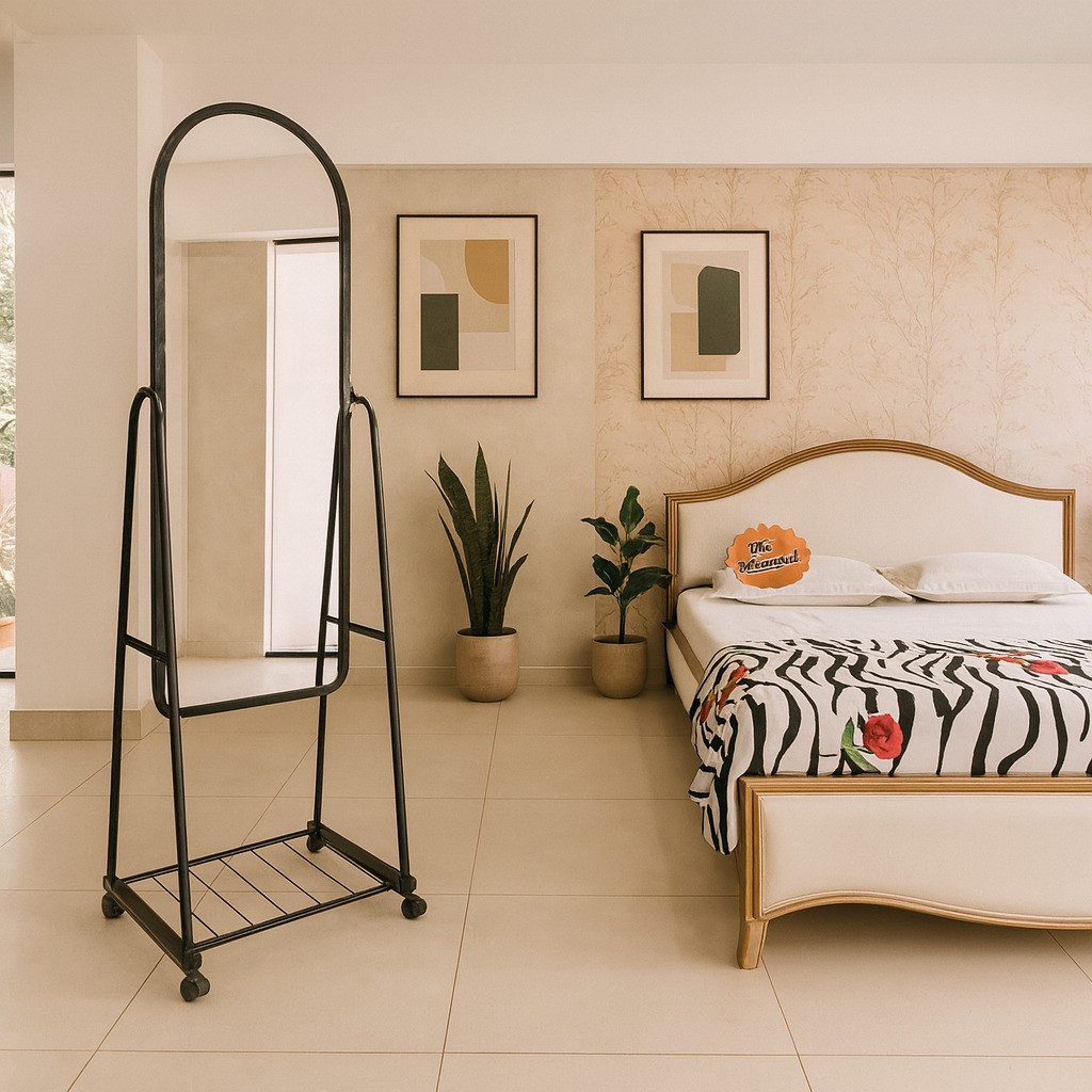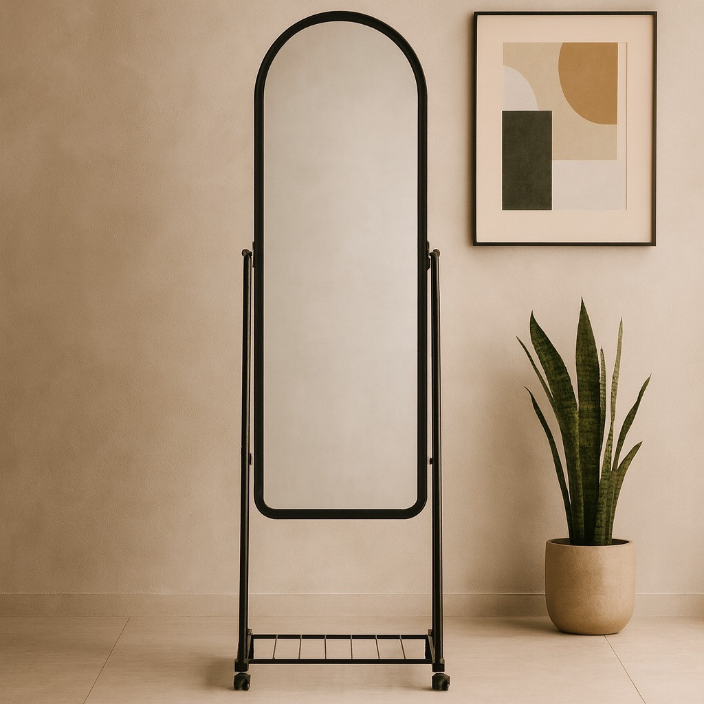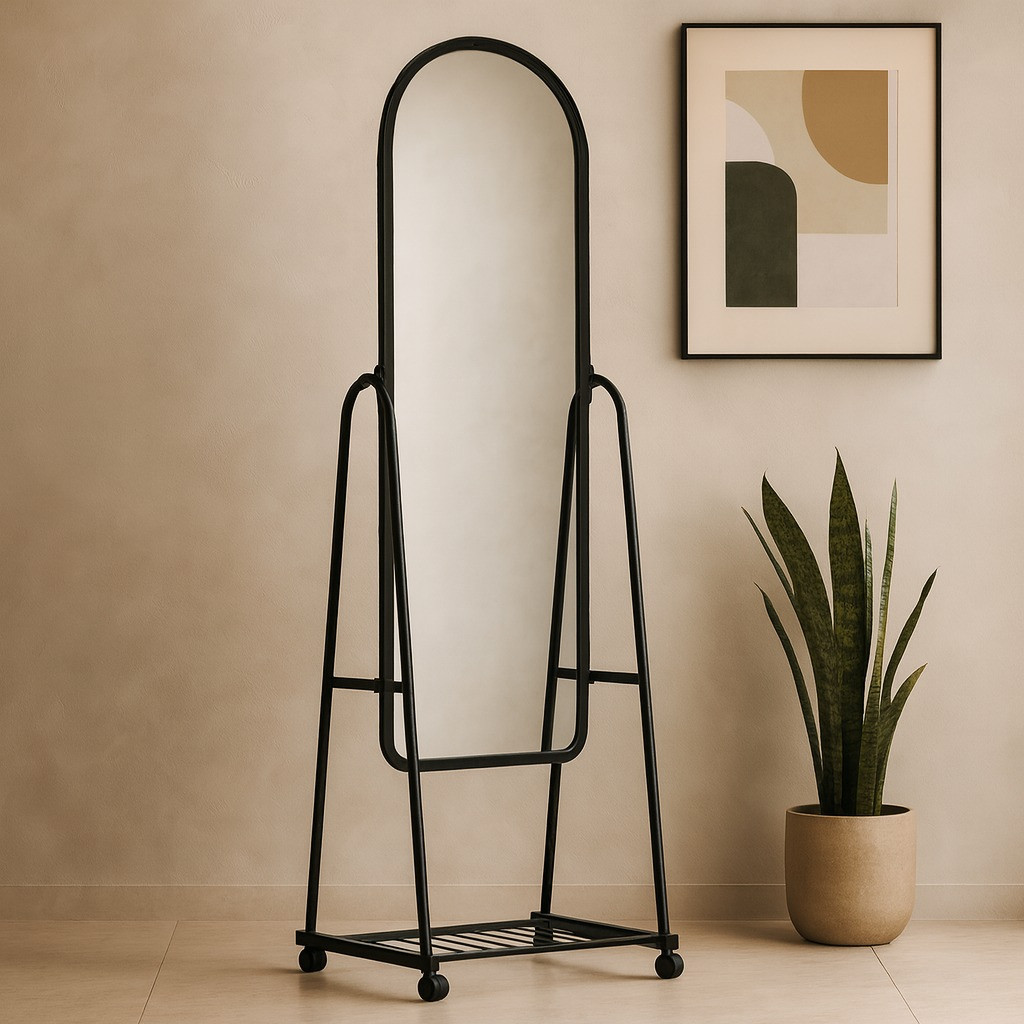 Material: Metal+Glass_x000D_\nColour: Black Standing Mirror