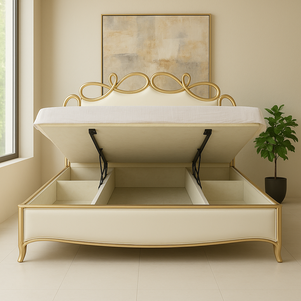 Udita Modern Design Rubber Wood Bed with Hydrolic Storage