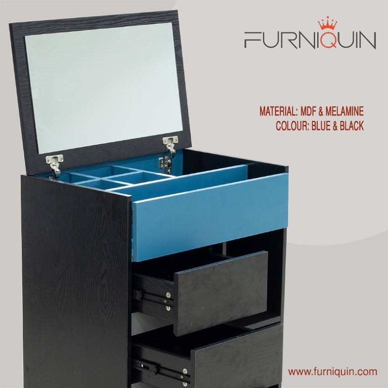 Aqua Dressing Table Folding Blue and Black with Melamine Polish