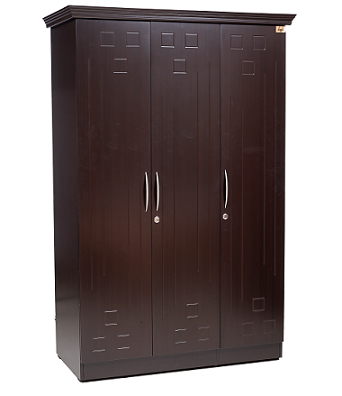 Armadio 3 Door Wardrobe with MDF & PU in Dark Chocolate Color