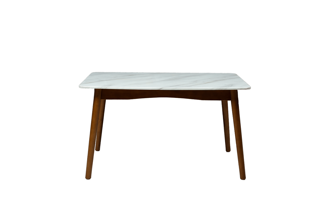 Atlanta Dining Table with Composite Marble and Wooden Leg in Carrara Marble Finish