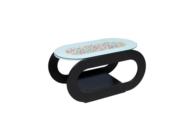 Beetle Tea Table/Centre Table with MDF & PU in Walnut & White Color with Glass Top