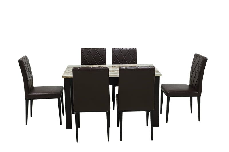 Size: 1300 X 80 X 75_x000D_\nMaterial: Paper Marble & Wood_x000D_\nColour: Mix Brown Dining Table