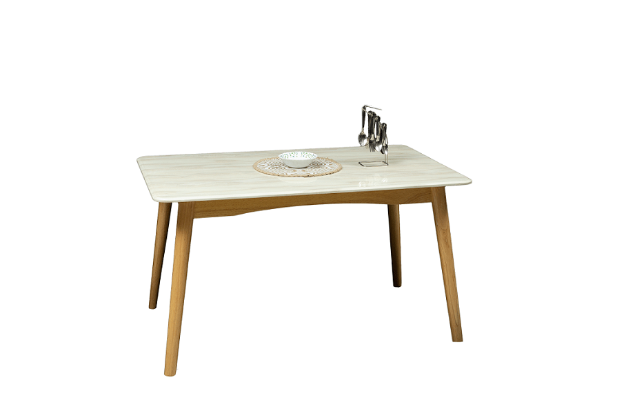 Dreamex Dining Table wit Composite Marble and Wooden Leg in Creamy Carrara Marble Finish