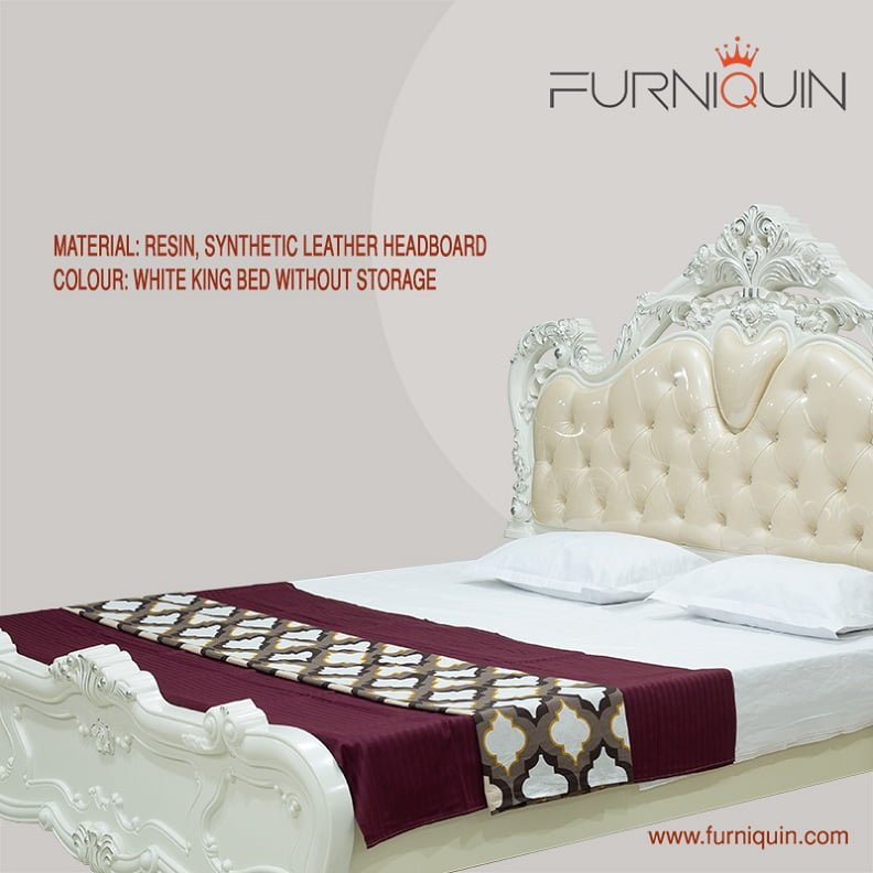 Size: 1800 X 2000_x000D_\nMaterial: Resin, Synthetic Leather Headboard_x000D_\nColour: White King Bed Without Storage