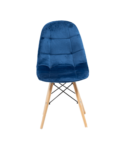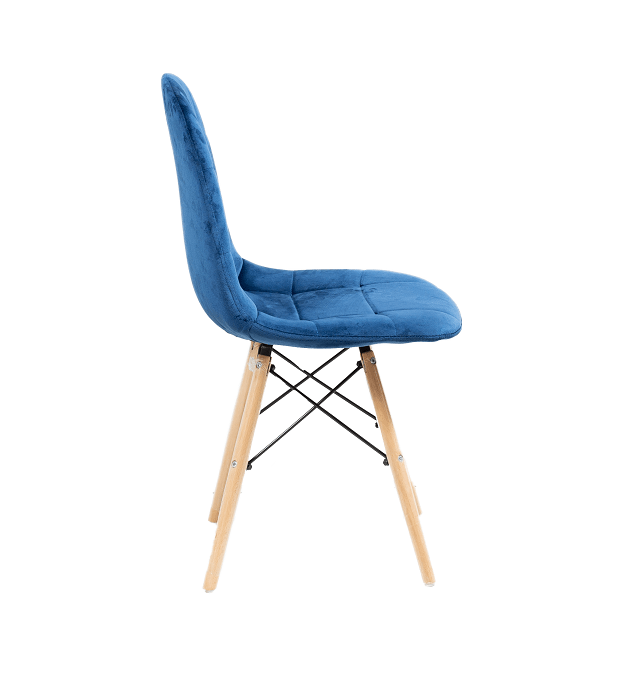 Indiglo Dining Chair with Blue Velvet and Wooden Leg