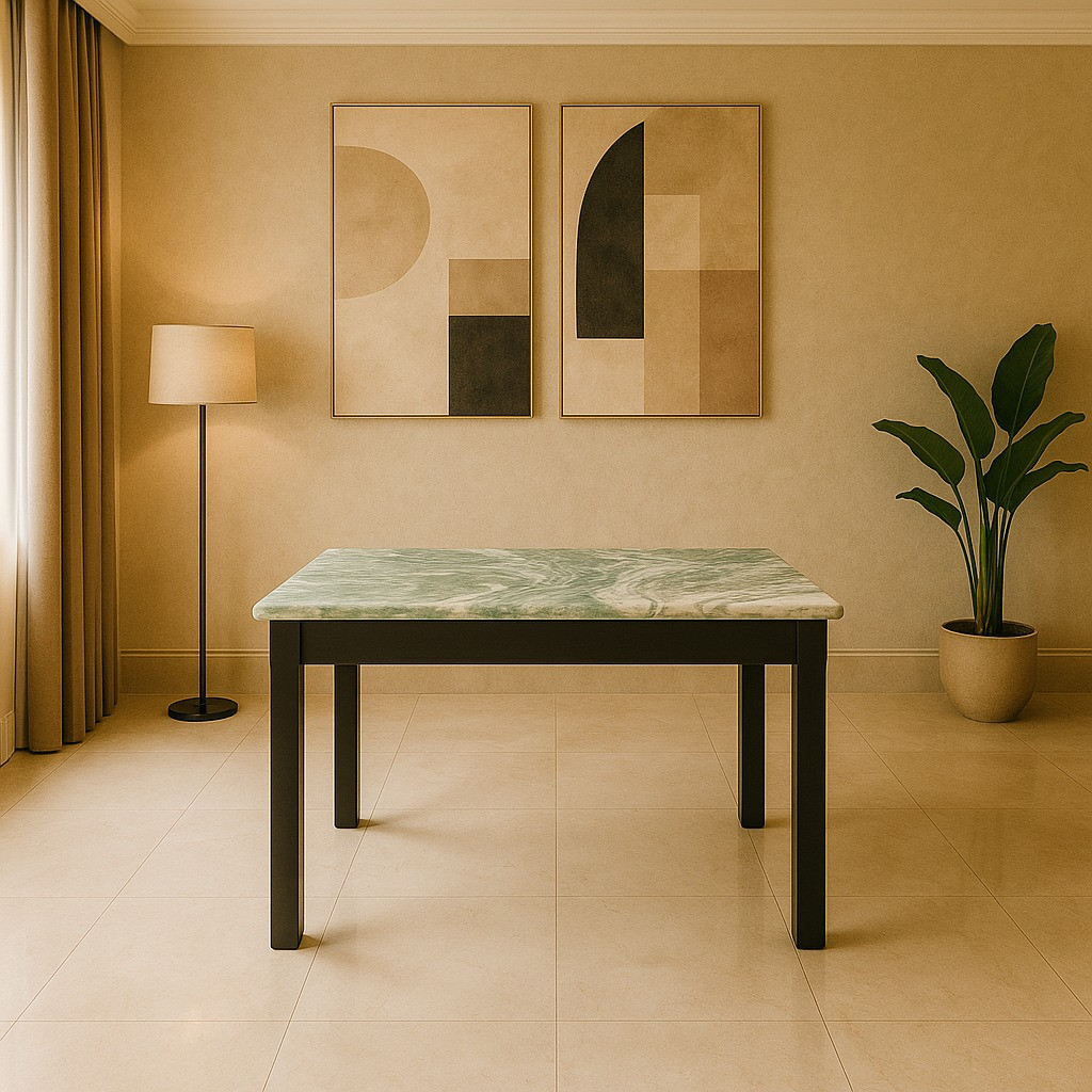 Kiwi Mehgini Dining Table in Dark Walnut COlor with Onyx Marble Top