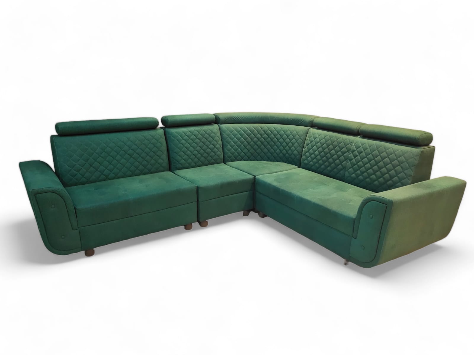 Raveena L-Sofa with Side Adjustable Head Rest Adjustable Greean Fabric