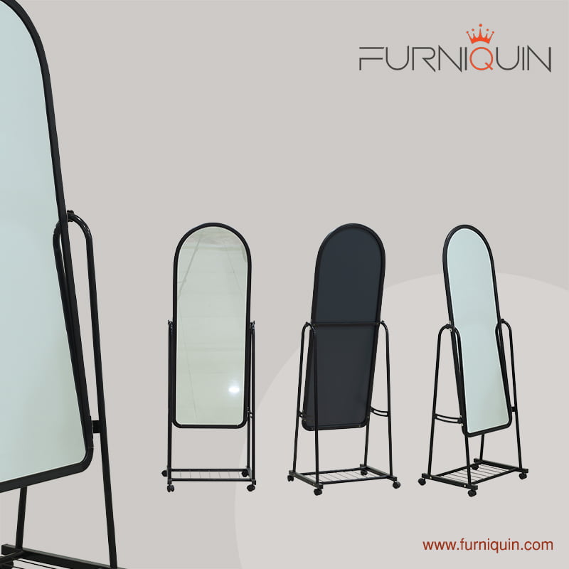 Material: Metal+Glass_x000D_\nColour: Black Standing Mirror