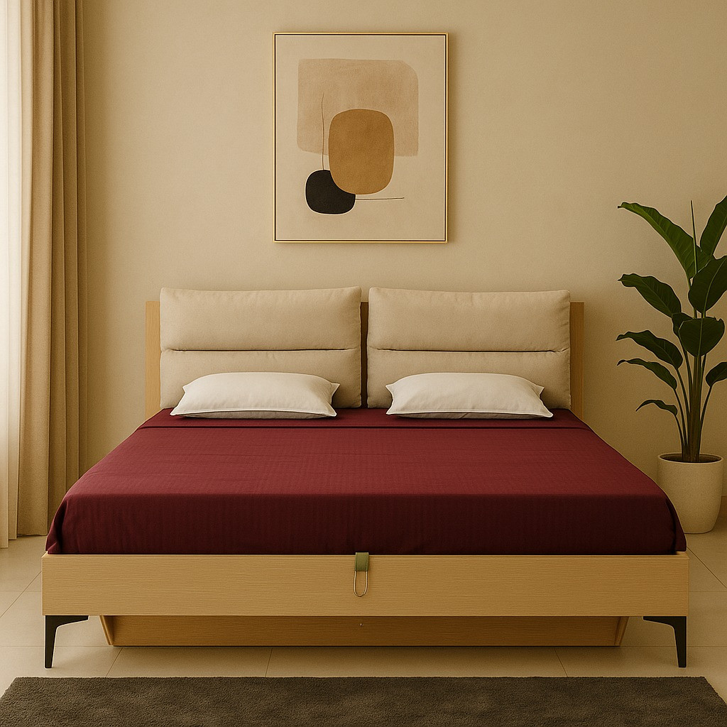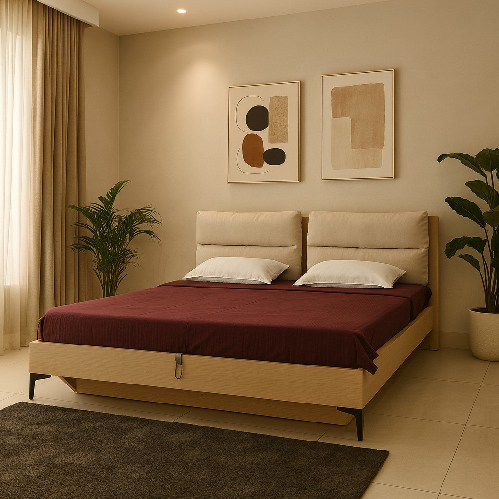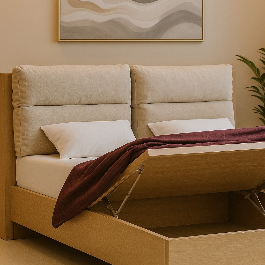 Sandstone King Bed in MDF & Melamine with Half Hydrolic Storage